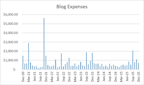 Our dedicated blog expenses* for the month of December were roughly $716 with the following breakdown: